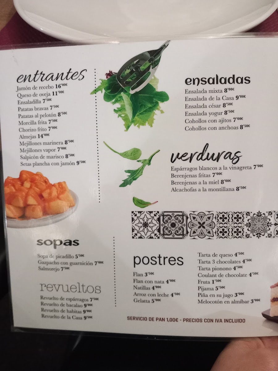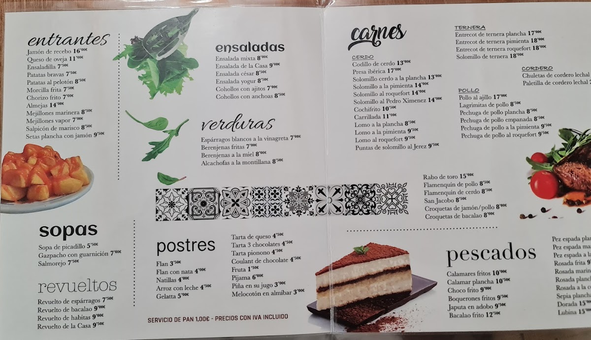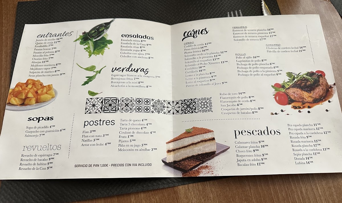 Introducing the Menu at Bar Restaurante Casa Hipólito